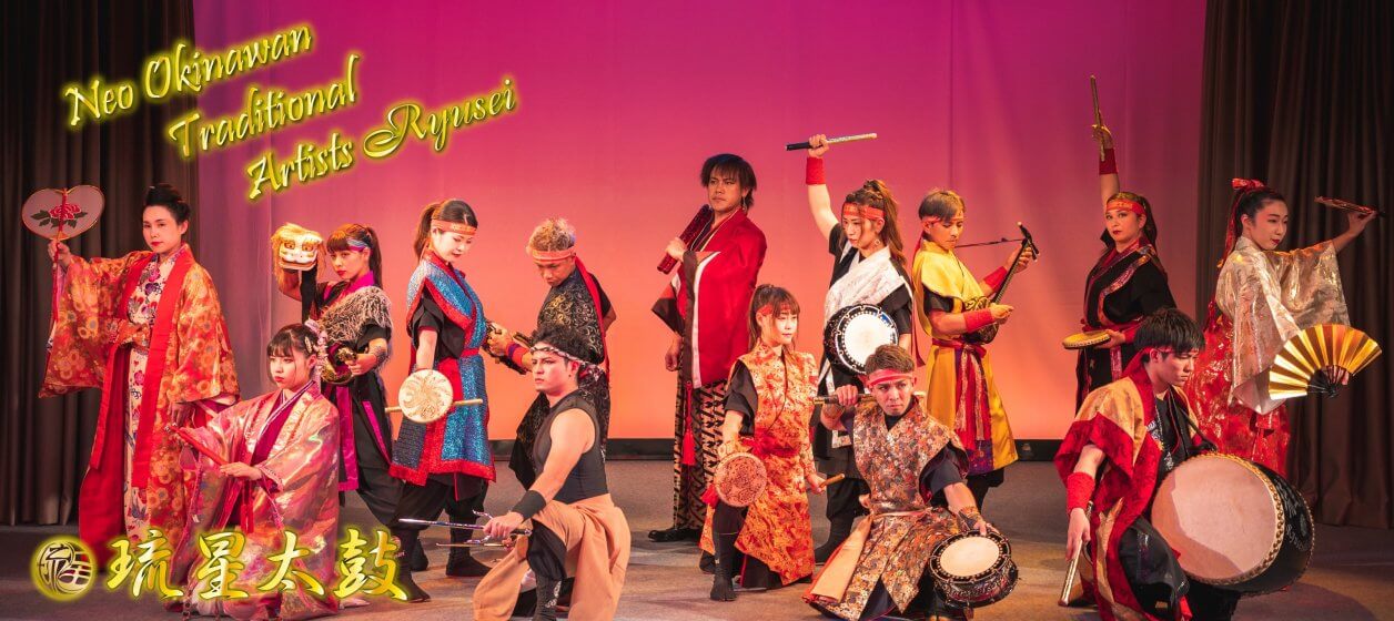 太鼓を使ったパフォーマンスの他に琉球舞踊、琉球獅子、空手、古武道、三線を使ったライブなど盛りだくさんに楽しめる舞台。