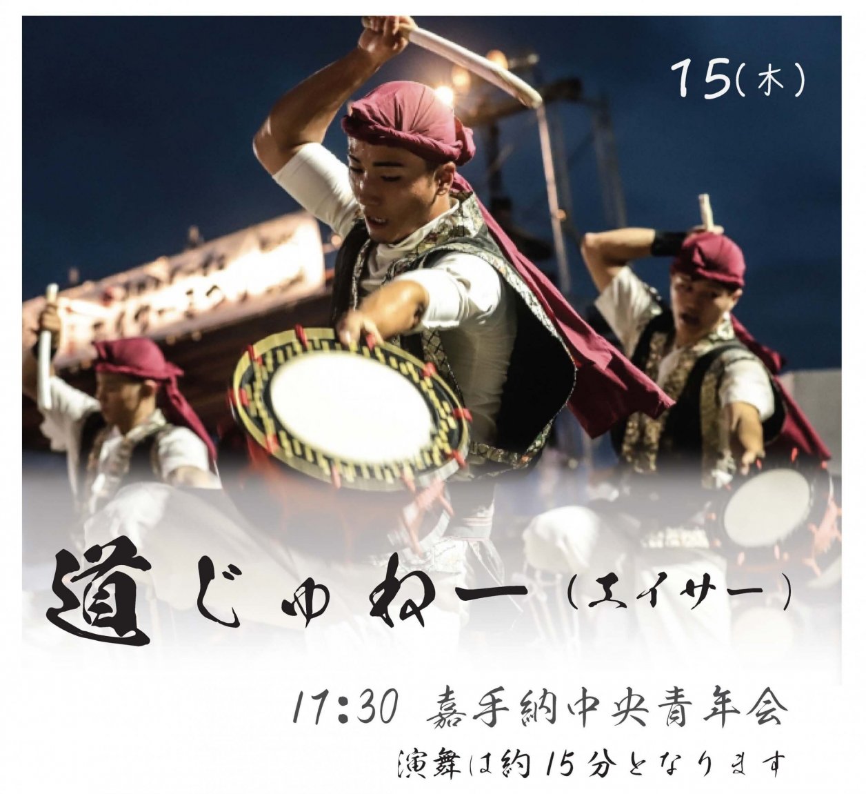 8月11日(日)と8月15日(木)には地元青年会による【道じゅねー】の演舞がございます。